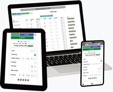The Habit Tracker helps you build better routines by tracking daily goals in a simple, mobile-friendly layout. You can add new habits, mark progress, and remove habits once they become part of your routine. It’s designed to keep your focus on what matters most — one habit at a time.